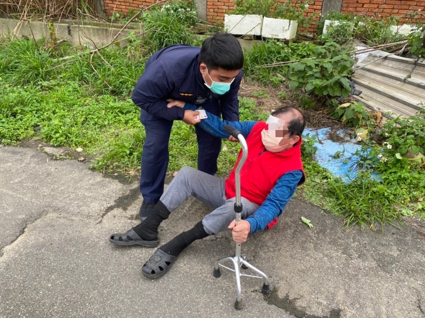 埔頂派出所警員黃冠勳、楊承諭27日下午16時許,巡邏行經新屋區埔頂路旁一處產業道路,見一名李姓老翁(72歲)跌坐路旁,額頭經過包紮且表情痛苦,便趨前查看關心。警員與其對話,發現老翁詞不達意且有些時空錯亂,因擔心老翁隻身在外恐發生危險,遂檢查其隨身口袋有無識別證件,發現一只空的處方箋紙袋,上面印有老翁的姓名。警員透過警用小電腦反覆交叉比對,確認李姓老翁的身分,且一個小時前老翁家屬才剛完成失蹤人口的報案手續。