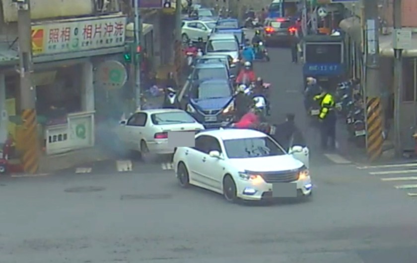 新屋區中山路壅塞,楊梅分局新屋分駐所員警蔡皓傑於該路口執行交通疏導勤務,發現一輛自小客車擦撞路邊車輛,蔡員正欲上前處理時,該車再往前追撞前方行駛中自小客車,最後撞上路旁燈桿,造成路口停等號誌兩名機車騎士倒地,且該車自撞燈桿後仍為持續加速狀態,現場濃煙四起,蔡姓員警見狀立即上前將已趴在方向盤昏迷之駕駛由駕駛座拖出車外並將車輛熄火,附近熱心民眾協助傷患救護,由後續警力到場將狀況排除。
