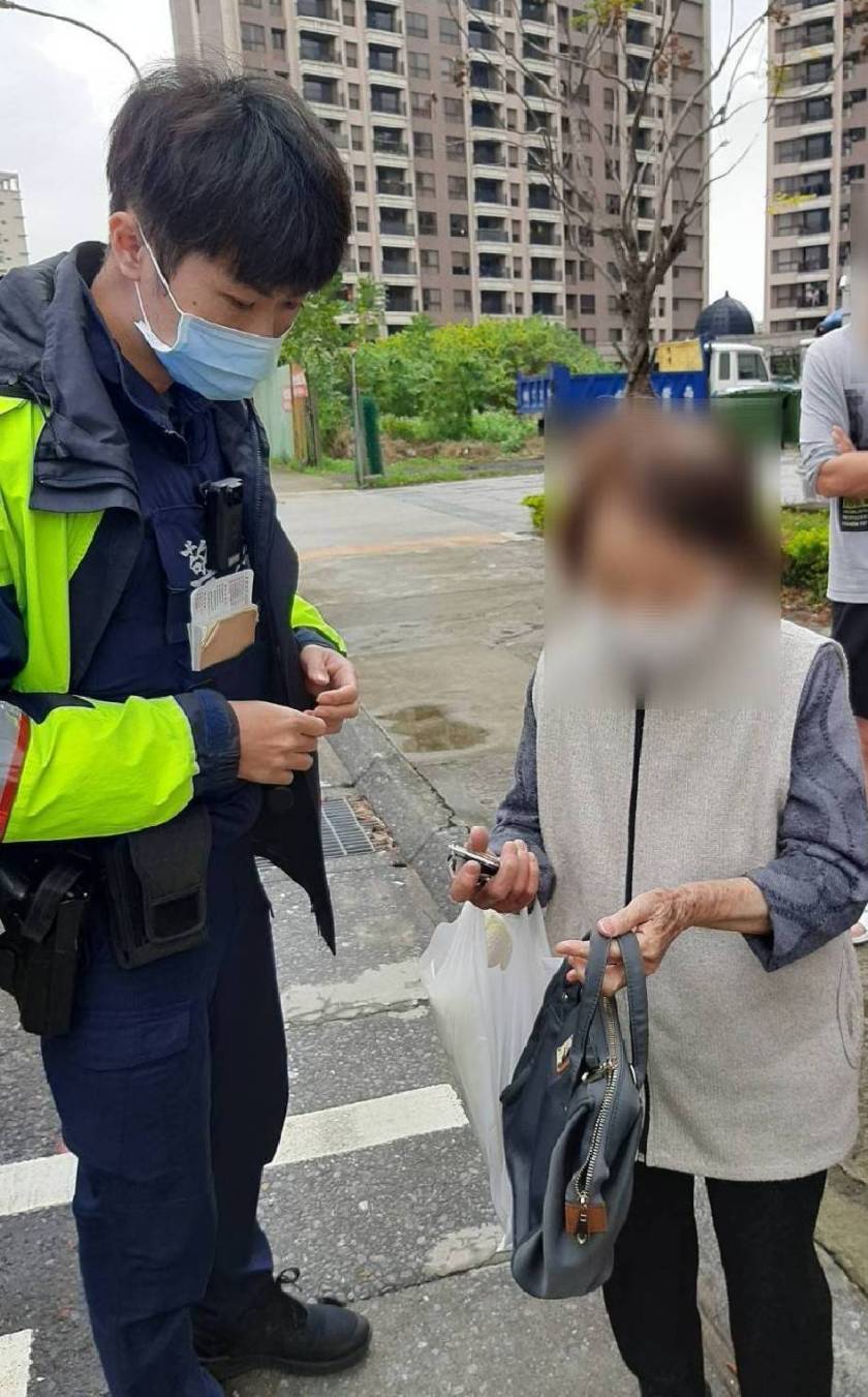 八德分局八德派出所員警江政勳、鍾明鈞日前12時許擔服巡邏勤務,行經八德區仁德路路段時,發現路旁一名老婦神情慌張不知所措,疑似有迷途情形,警方立即上前關心,婦人稱從台中北上與女兒相聚過年,晚上要煮家鄉味給北嫁的女兒一家人品嚐,中午自行外出採買,因人生地不熟,加上記憶力退化,忘記回家的路,又無攜帶手機在身上,無法跟女兒聯絡;員警現場詢問老婦年籍資料,其疑似有失智狀況,支支吾吾無法明確說出相關資料或家屬聯絡方法。