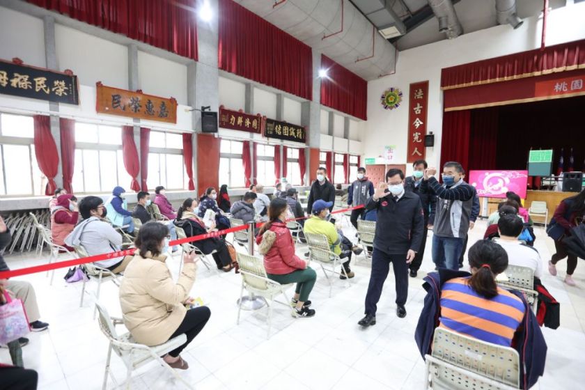 桃園市長鄭文燦(4)日上午前往桃園市榮民服務處及桃園巨蛋體育館,視察疫苗接種站運作情形。鄭市長表示,目前桃園雖然有些許的疫情,但市府團隊將持續以高標準防疫措施,讓疫情早日清零。接種第三劑疫苗後可大幅提升保護力,也可預防重症的風險,桃園市榮民服務處及桃園巨蛋體育館分別由中壢天晟醫院與台北榮總桃園分院提供貼心、友善的服務,呼籲市民朋友踴躍接種疫苗,落實佩戴口罩等個人防疫措施,過一個平安的好年。