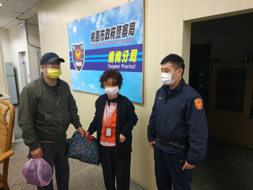 員警見戶外天色昏暗且天氣寒冷,於是將李女先帶回派出所內,提供熱茶及麵包給李女,並協助聯繫李女的兒子楊男(47歲),楊男也立即從桃園開車來接李女返家團圓,李女與家人對於警方的熱心協助均表示感謝,讓他們感受到警察的溫暖。
