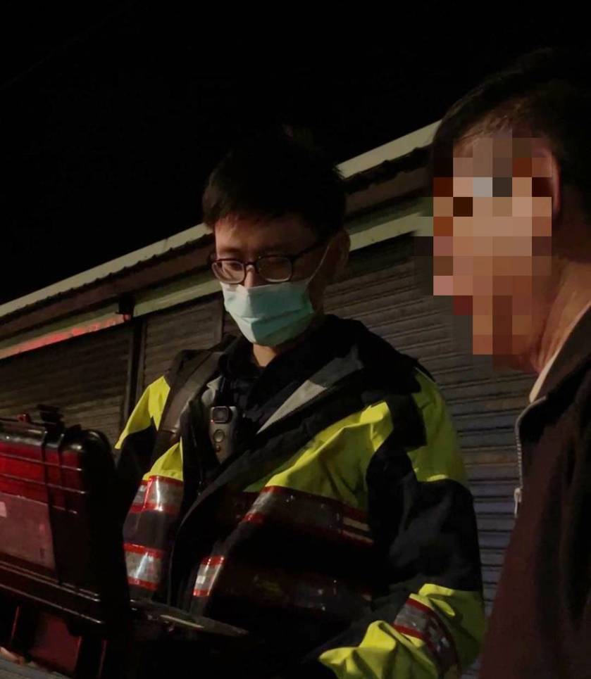 大園警方表示,春節假期期間,警方取締酒駕勤務不曾停歇,觀音分駐所所長鄒宜國、警員魏志宇、郭政達,6日晚間在濱海公路執行取締酒駕勤務,發現前方一輛自小客車紅燈右轉,員警見狀立即上前,在巷弄內將車輛攔下。