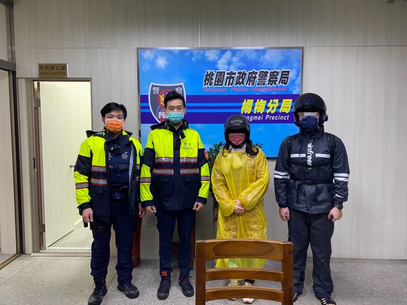 楊梅分局上湖派出所警員洪祥皓、賴彥竹及義警簡世傑昨日晚間20時許巡邏時,在楊梅區高鐵南路九段發現一名蔡姓女子(25歲)獨自蹲在路旁,因當時下著雨,三人便上前關切。