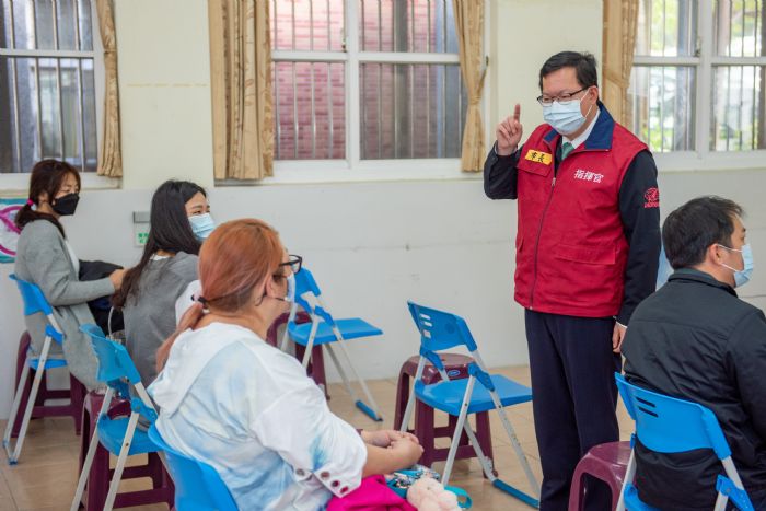 桃園市長鄭文燦11日上午前往龜山區,視察「山頂市民活動中心」、「山福市民活動中心」及「大崗市民活動中心」疫苗接種站。鄭市長表示,目前桃園第一劑、第二劑及第三劑疫苗覆蓋率皆高於全國平均值,65至74歲以及75歲以上長者疫苗覆蓋率為六都最高,3月初將以第三劑疫苗覆蓋率50%為目標,12日全市37處社區接種站亦將加開莫德納疫苗接種,以發號碼牌限額方式,提供未預約民眾施打,提升群體保護力。