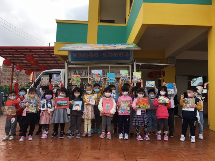 桃園市立圖書館行動書車又有新成員加入!桃園市袁和美女士為響應市長推動多元閱讀,讓閱讀教育向下扎根的政策,捐贈1輛行動圖書車給桃園市立圖書館,並以其父親的名字命名為「袁子輝號」,完成父親為地方鄉親貢獻的心願。2/16試車首日上午載著1000本主題圖書到楊梅區明日之星幼兒園,小朋友蜂擁而上,愛不釋手。