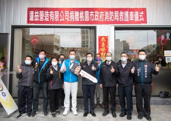 達益營造有限公司董事長劉達仁表示,達益營造成立逾10年,希望藉由本次的救護車捐贈,表達「取之於社會、用之於社會」的企業精神,未來達益營造也將持續努力,秉持感恩的心,繼續回饋社會。包括消防局長謝呂泉、桃園區長洪清淵、達益營造有限公司董事長劉達仁等均一同出席典禮。