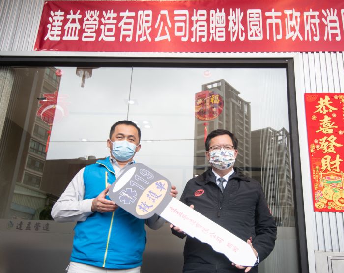 桃園市長鄭文燦24日上午前往桃園區,出席「達益營造有限公司捐贈桃園市政府消防局救護車典禮」。鄭市長表示,感謝達益營造回饋社會、支持消防,捐贈本市消防局桃園分隊救護車1輛,本次捐贈之救護車,不僅配置高階監護電擊器(X-series)等多項裝備器材,車身上更具有巴騰堡格紋設計,在日照或一般車燈照射下,能維持視線500公尺內清晰可見的高辨識度,提升救護人員值勤安全,相信這份捐贈將給予桃園更大的救護力量,在不知名的角落照顧更多人。
