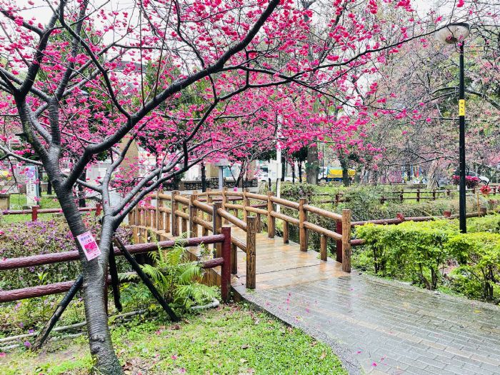 228連續假期即將到來,正逢櫻花盛開季節,位於中壢普強里的莒光環保公園櫻花盛開爆棚,成為近來最夯打卡熱門景點。公園景色優美的主因,原來是榮獲環保署辦理「110年度空氣品質淨化區執行或推動認養績優單位」殊貢獻獎,在里長江長榮的號召帶領下,一群無私奉獻的環保尖兵共同維護的成果。