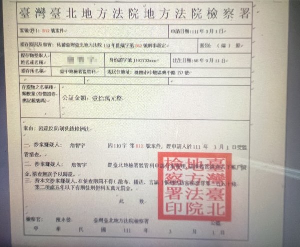 中壢警分局中壢派出所員警鄭沛清、林禹聖於4日13時45分許接獲聯邦銀行報案稱有一名男子欲解除美金定存帳戶,經銀行理財部的陳襄理發覺異常,隨即請警方到場協助。經詹男(53歲)向警方表示,於家裡接獲佯稱中華電信來電稱有一筆帳單未繳錢,市話會被停掉,並運用話術輾轉告知其遭詐騙,並主動協助詹男轉介予偽裝的165專線,隨後由自稱「張麗華」之假警員告知其可能涉及刑案,接著又轉接台北地檢署專案主任,隨後又要求詹男加入名稱「陳永發」LINE(通訊軟體)的ID,該假檢警即要求詹男不得將電話掛斷,並指示其至台新銀行轉帳新台幣100000元至其指定之人頭帳戶,過程中皆使用LINE(通訊軟體)指揮詹男,匯款成功後即以LINE傳送假公文給詹男,導致詹民誤以為真有其事。