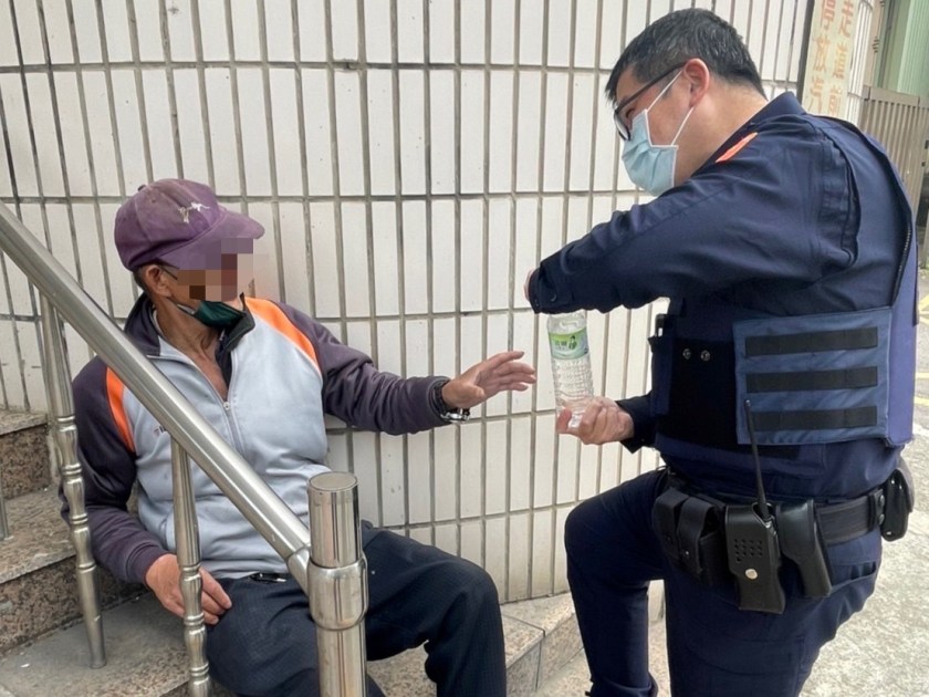 楊梅派出所副所長江弘裕、警員簡睿雅6日下午16時許接獲民眾報案,表示在楊梅農會前有一老翁蹲坐在地,員警到場查看發現老翁坐臥在農會前方階梯上,兩人上前關心並攙扶老翁起身,經了解原來是老翁下午外出散步,遠從楊梅區梅獅路走到大模街農會,回過神來才發現走到陌生的地方,由於本身就行動不便,加上長時間地行走,最終體力透支,只好先於路旁歇息。