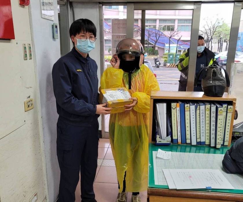 桃園市大園區一名胡姓女子,7日下午在超商領完包裹後騎車返家,途中包裹不慎掉在半路,正在送貨的物流業者經過時發現,將包裹送至派出所,警方隨即調閱監視器,循線找到胡女,順利將包裹物歸原主。