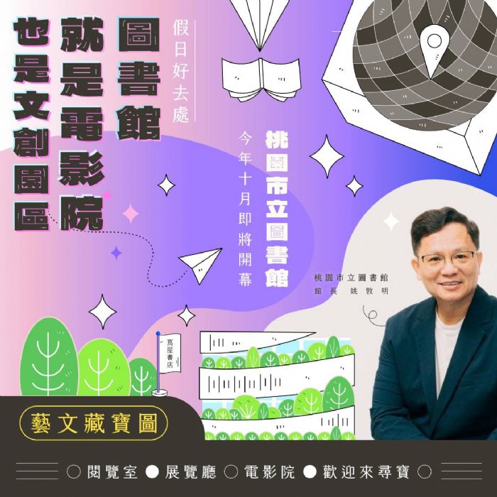 桃園市立圖書館不只是全國面積最大的圖書館,還要給你超感官的全新體驗,結合國賓影城、蔦屋書店、台灣霹靂的文創展演與餐飲業的文化風格新據點,一次滿足民眾散步、看展、閱讀,享受美食及觀賞電影的文化饗宴好所在,並規劃全年舉辦各種主題性亮點展覽,提供沉浸式體驗,期望串連藝文與閱讀,樹立城市閱讀品牌概念,打造專屬桃園的文創旗艦基地。