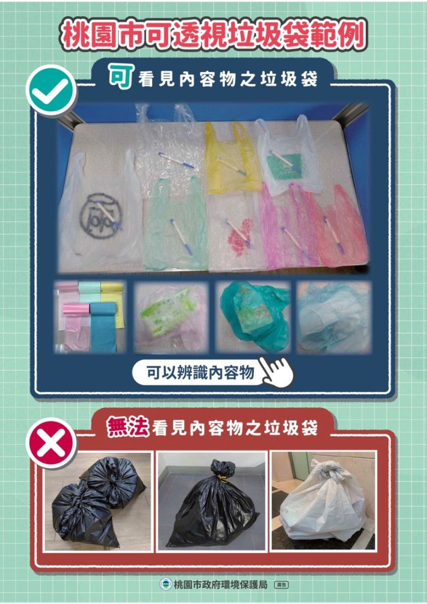 環保局長呂理德表示,目前僅限一般垃圾需要用到可看見內容物的垃圾袋打包垃圾,至於資源回收物、廚餘及大型家具等仍可依照以往模式回收。市民朋友家中黑色、深色或不透光垃圾袋,可使用於盛裝資源回收物、廚餘等,於交付資源回收車及丟入垃圾車廚餘桶時,袋口無須綁緊,讓清潔隊員方便辨識,請大家持續落實垃圾分類、資源回收,廚餘水份瀝乾再倒入廚餘回收桶內,從源頭降低垃圾產生量,提高資源回收量,自源頭減量就能讓家園清新乾淨。