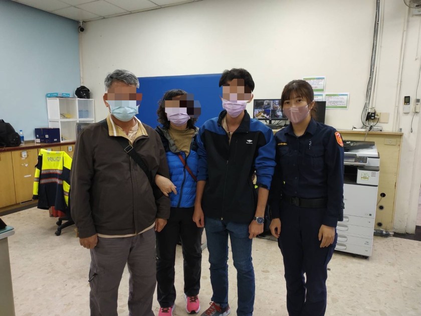 一名患有知覺失調症的王姓男子(29歲)26日4時許,獨自一人坐在超商休息區,員警上前關心時發現男子時常顧左右而言他,再使用警用小電腦查證身分後,得知該名男子為失蹤人口,便立即聯絡男子家屬,成功協助王男一家人團圓。