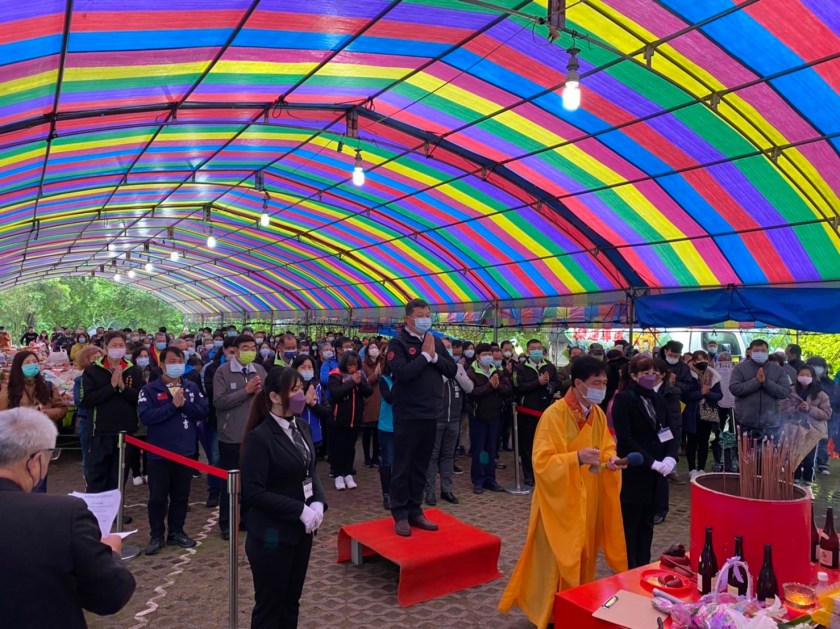 楊梅生命紀念園區111年度春祭在崇德納骨塔前廣場舉行,楊梅區邱世源區長主祭