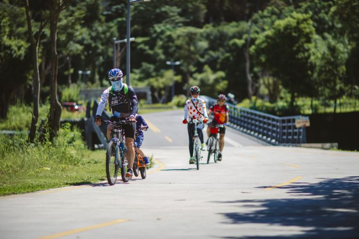 呂局長表示,「綠色生活悠遊節 +」活動範圍以桃園區音樂之林公園為起點,沿南崁溪自行車道前進,至三民運動公園由青溪橋折返約2.5公里,並以蘆竹區光明河濱公園為終點站全程約9.5公里,光明河濱公園安排有文創市集、美食及音樂表演還有兒童直排輪體驗活動,自備自行車參與騎乘即加碼贈送市集券100元,此外,活動騎乘路線有規劃4個集章點,只要民眾完成指定集章數量,即贈送環保好禮、市集劵50元及自行車LED燈組,邀請市民朋友來到桃園最美的水岸自行車道,環騎漫步一起體驗零碳輕旅將河岸風光盡收眼底。
