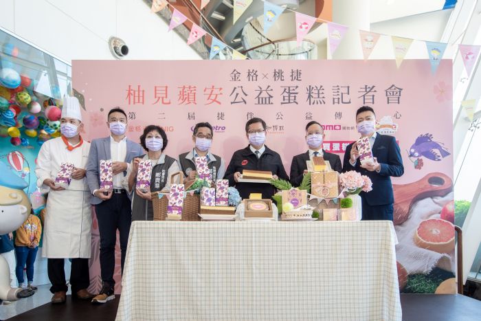 金格食品股份有限公司總經理林世閎表示,非常榮幸金格食品能夠再度攜手桃園捷運公司,合作推出「柚見蘋安公益蛋糕慈善計畫」。去(110)年舉辦的「捷伴做公益」慈善蛋糕活動,廣受各界好評,今(111)年再延續上次活動內容,正式邁入第二屆。本次除由金格食品、九如禪林基金會、桃園捷運公司三方合作外,更擴大邀請MOMO購物網及金格觀光工廠卡司•蒂菈樂園共同加入,相信會讓更多人知道這項有意義的活動。