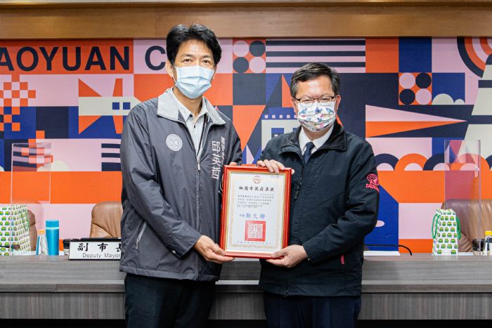 桃園市長鄭文燦13日主持市政會議,表揚市府「110年度創新提案」獲獎局處。鄭市長表示,市府鼓勵各機關同仁透過創新提案,提出業務相關興革意見或創新便民措施,讓市府業務品質升等,110年度創新提案共徵得67件提案,參加機關包含市府各級機關及區公所,經初審及各機關簡報詢答的複審會議後,最終選出創新獎5件及點子獎9件,共14件創新提案獲獎,都是政府創新的典範。