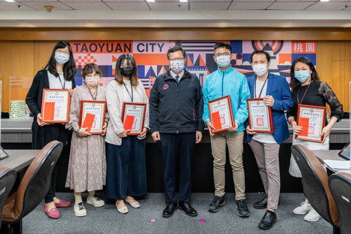 桃園市長鄭文燦13日上午主持市政會議,表揚市府「110年度績優研考人員」。鄭市長表示,研考人員無論在施政計畫的進度管控,或是市府服務品質提升、創新提案等方面,均適時發揮功能,且對於機關首長的決策、執行、考核,也提供相當大的協助與建議,特別感謝研考人員長期的努力與付出。本次獲獎的6名績優研考人員,分別為楊梅地政事務所助理員廖倉淯、研究發展考核委員會聘用研究助理邱美婷、水務局科員楊世逢、工務局股長朱薏珊、交通局專員鄭佩琪及衛生局技士謝懷萱。鄭市長指出,為鼓勵各機關表現優秀的研考人員,今(111)年特別修訂績優研考人員獎勵要點,除行政獎勵及獎狀之外,再增加千元禮券,以資鼓勵。