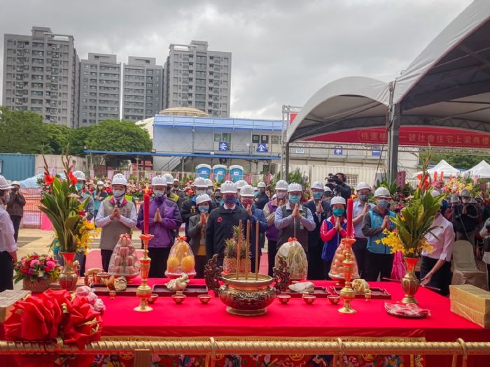 桃園市秘書長黃治峯15日下午前往楊梅區出席「楊梅一號社會住宅上梁典禮」,黃秘書長說,楊梅一號除住宅棟外,另有獨棟社福棟,竣工後將有幼兒園、終身服務學習據點、公托中心、小作所、居家托育服務中心、家庭照顧者支持據點、市民活動中心等7大設施進駐,提供各年齡層住戶及周邊民眾使用,從幼兒照護到終身學習提供多樣化的服務,預計於今(111)年9月竣工,並提前於111年底開放使用。