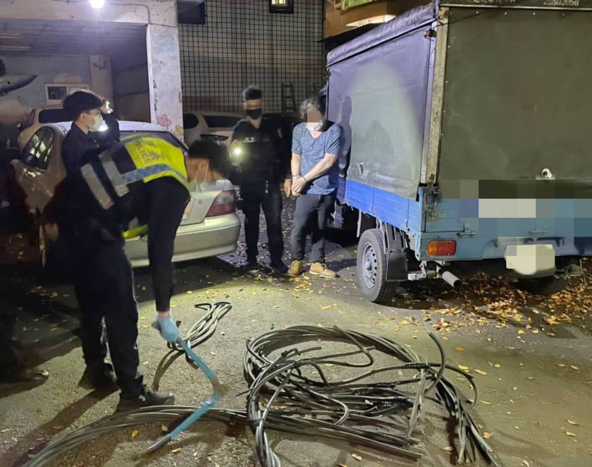 烏俄戰火尚未停歇,連帶影響國際銅價上漲,有不法份子因此鎖定路邊的電纜線,竊取後變賣牟利,大園分局埔心派出所為此加強防竊勤務,14日深夜巡邏時攔查一輛可疑小貨車,在車上發現一批遭竊取的台電電纜線,詢後將駕駛陳姓男子依竊盜罪送辦。