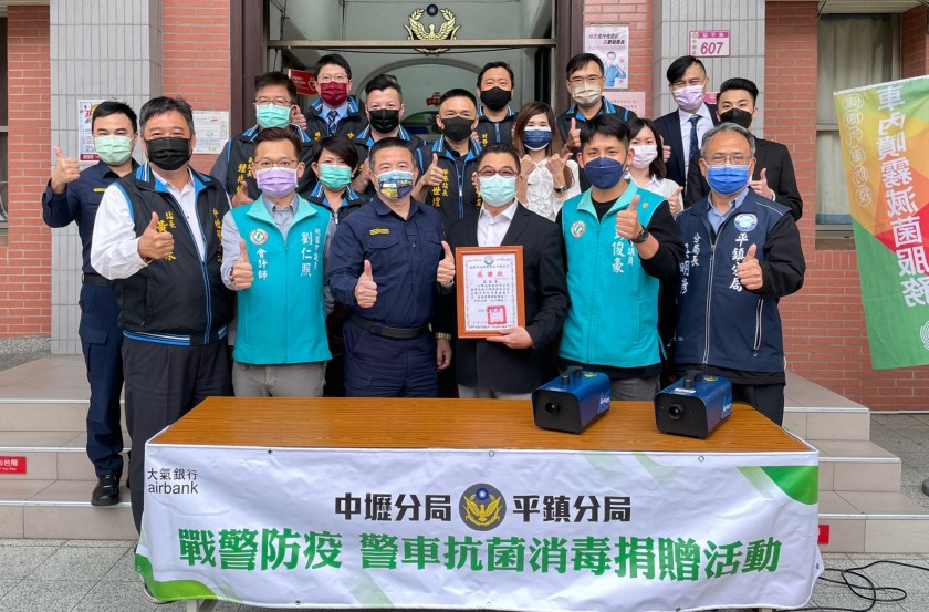 現場由中壢分局長蕭欽杰及平鎮分局長吳明彥共同於中壢警分局前代表接受,並由台灣達客笛有限公司人員為數部警車及偵防車實施消毒滅菌成效良好,後續也會將分局其他公務車輛實施消毒。