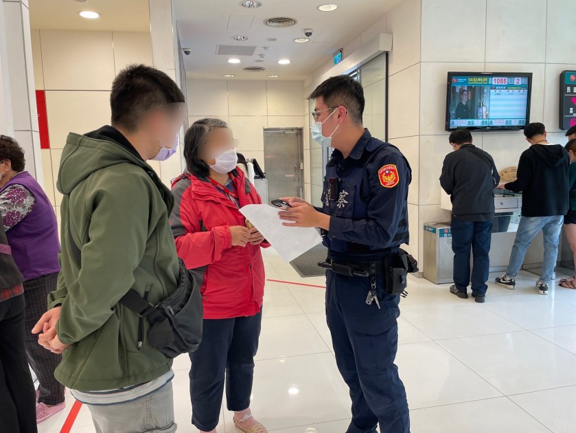 於是婦人與兒子15日下午拿著存摺及印鑑跑到銀行準備匯款新臺幣20萬元至對方指定帳號,但在填寫匯款單時,不斷的說電話,讓承辦的行員察覺有異,恰巧宋屋派出所巡邏員警前來簽到,行員趕緊請求警方協助,一起加入勸說母子倆的行列。