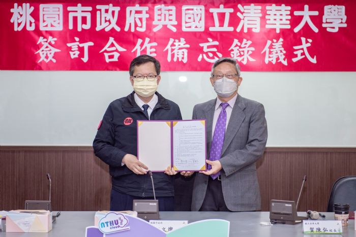 桃園市長鄭文燦18日上午於市府,出席「桃園市政府與國立清華大學簽訂合作備忘錄儀式」。鄭市長表示,市府與清華大學簽訂合作備忘錄,合作項目包括:學生自主學習、線上教學、選修課程、語言教育師資培訓、科技教育扎根等,將提供高中生跨域學習機會及專業師資培育計畫,充分運用清大頂尖大學的教育資源,落實「大手牽小手」的精神,讓國民教育到高等教育能銜接得更好,帶領台灣高等教育進步。