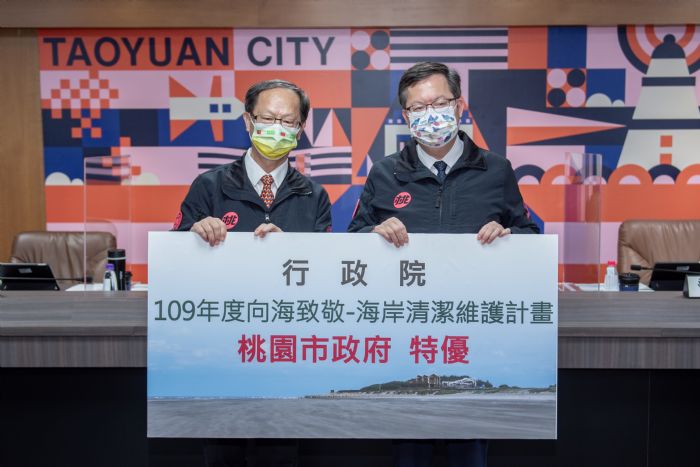 桃園市長鄭文燦20日上午主持市政會議,接受環保局呈獻於中央機關環境保護績效考核中所榮獲13項大獎。鄭市長表示,本次環保局榮獲13項大獎,包括環保署頒發「直轄市及縣(市)政府環境保護績效考核績優機關」特優、行政院頒發「向海致敬-海岸清潔維護計畫」特優、海洋保育署頒發「海洋環境管理」特優,以及包括「土壤及地下水污染整治」、「因應氣候變遷行動」、「空氣品質維護改善」、「水污染防治」、「資源回收」等特優及優等獎項。鄭市長指出,市府積極面對過去環境治理所累積的問題,用心解決城市發展中所遇到的挑戰,在海岸管理、濕地保育、空污減量、水污防制、土壤復育、綠色生活推廣、減碳規劃、資源回收、各區環境清潔等方面,提出許多創新作為,外界也看到桃園在環境治理上的進步,獎項更是對市府團隊的肯定。