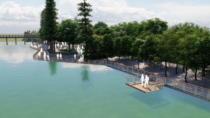 市府正推動「後湖溪逐浪天梯計畫」,將挹注2億元,在緊臨後湖溪的海岸打造長度2公里的天然拋石護岸,並設置天籟海堤,以特殊設計讓遊客在海邊聆聽海浪歌唱,是全國首座會逐浪唱歌的海堤,預定今(111)年9月開工、明年底竣工,搭配後湖溪泛舟體驗,將成為海岸旅遊亮點、展現地方魅力。