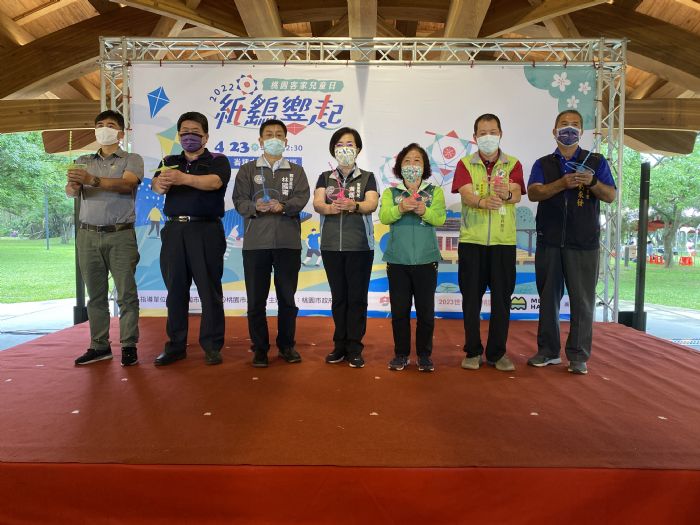 為豐富兒童的客家體驗,桃園市政府客家事務局23日上午於崙坪文化地景園區舉辦「2022桃園客家兒童日」活動,議員郭蔡美英、觀音區長林國甯等多位貴賓亦來到現場與百來位大小朋友一起學做八角風箏,大家興致勃勃,歡樂聲不斷。