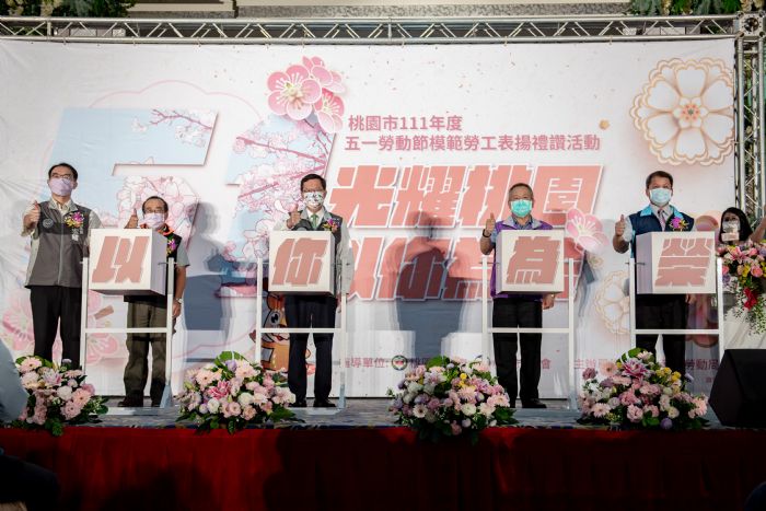 桃園市長鄭文燦29日上午前往中壢區,出席「桃園市111年度五一勞動節模範勞工表揚禮讚活動」。鄭市長表示,工作代表人生某個層面的價值,職場上的優良表現,能帶動職場及自我成長,獲得模範勞工的肯定,更是勞動價值的展現,因此特別在五一勞動節前夕,表揚工會選出的332位模範勞工。鄭市長讚揚勞工夥伴在職場上所展現的價值,並先預祝勞動節快樂,市府也將促進對勞工就業的支持,持續提升桃園的就業力。