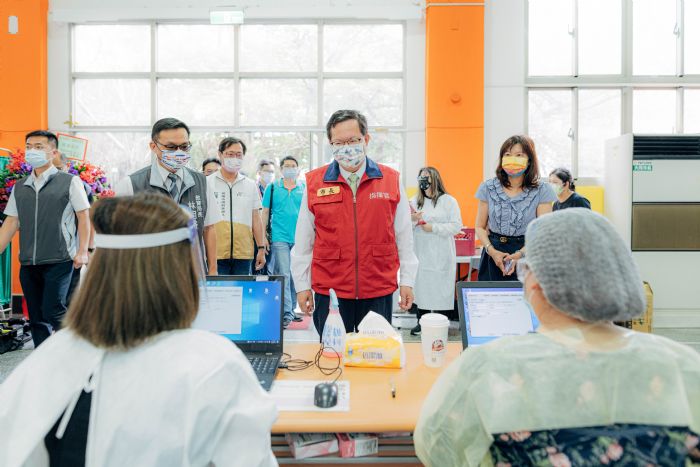 桃園市長鄭文燦12日前往桃園區桃園國小,視察國小學童施打第1劑莫德納疫苗入校接種作業。鄭市長表示,桃園已於5月2日起安排國小入校接種疫苗,目前全市國小學童共計13萬1,000多人,約有35%的家長同意子女到校接種莫德納疫苗,預計在 6月中旬完成195所國小學童疫苗施打計畫,家長除了可選擇讓子女於校園接種,也可至合約醫療院所接種,預估兩者加總,國小學童疫苗覆蓋率將會超過4成。