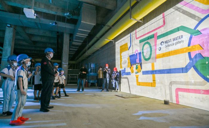 水務局長劉振宇表示,「2022 Next Water Science Gallery流動的科學,不思議的水」即日起開放預約參觀,展覽以燈光與多媒體方式,將水資中心廠區內營造成猶如地下宮殿,展覽分為「桃園公共污水規劃」、「生活污水處理流程」、「水科學」等主題,為了讓國小生也能輕鬆理解,特別以淺顯易懂的方式呈現,歡迎大家一起動動手,透過科學實驗瞭解污水淨化的原理。