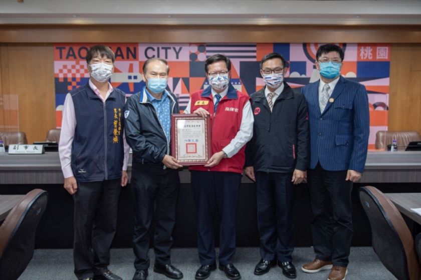 桃園市長鄭文燦19日下午主持市政會議,表揚陳允棟先生捐助中壢區元生國民小學設立「陳儒弘獎助學金」,並頒發感謝狀。鄭市長表示,宥星皮業董事長陳允棟先生熱心公益,為紀念其子陳儒弘先生,捐助中壢區元生國小,以新台幣50萬元設立「陳儒弘獎助學金」,22年來培育許多後起學子,其無私的教育奉獻,可說是一份大愛。