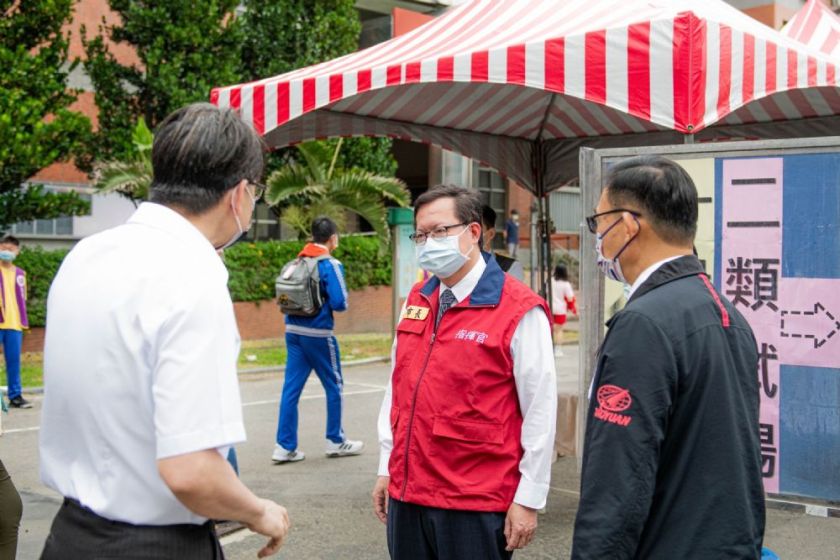 桃園市長鄭文燦21日上午分別前往武陵高中及桃園特殊教育學校,視察國中教育會考考場並勉勵考生。鄭市長表示,111年國中教育會考於5月21、22日舉行,桃園考區共2萬763人報名(含特殊考生1,143人),共22所學校設置考場。因應本土疫情升溫,各試場除訂定防疫安全標準作業流程,同時也準備了276間第二類備用試場,供居家隔離檢疫、自主防疫考生使用,確保考生權益。