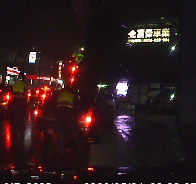 八德分局廣興派出所副所長蔡琦南、警員黃筱婷日前20時許擔服巡邏勤務,行經轄區新興路路段時發現交通壅塞,便循車流向前查看,在靠近廣興路路口時,發現一輛自小客車停放於路旁佔據半個車道,當時正值梅雨季節連續下雨多日,本來以為是違規停車,鳴警笛按喇叭示意開走,結果車子一動不動,副所長下車察看。