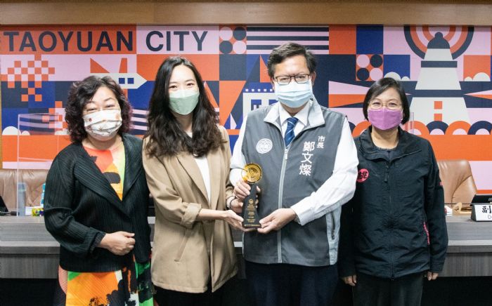 桃園市長鄭文燦8日上午主持市政會議,接受財團法人桃園市文化基金會呈獻榮獲「第32屆傳統暨藝術音樂金曲獎最佳傳統音樂專輯獎」。鄭市長表示,桃園市國樂團僅成軍5年,便以黑馬之姿入圍眾多獎項,最終以《絲竹雅韻》榮獲第32屆傳藝金曲獎最佳傳統音樂專輯獎,這是傳統音樂領域的最大獎項,要為桃園市國樂團的傑出表現喝采。
