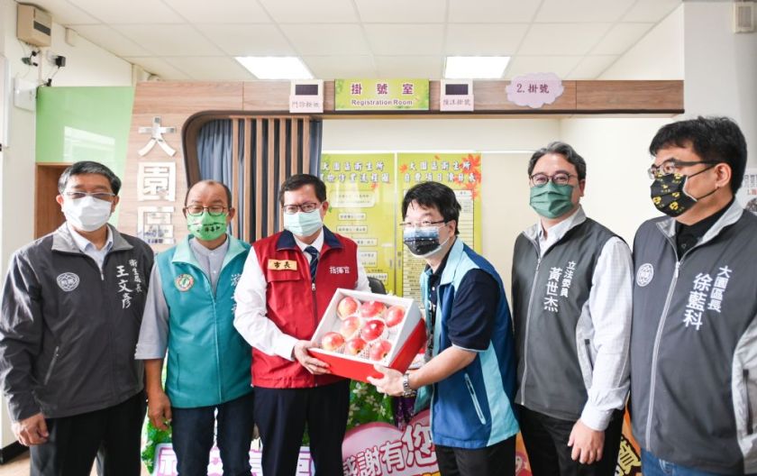 桃園市長鄭文燦10日上午前往大園區衛生所,慰勞第一線防疫人員並致贈水果禮盒。鄭市長表示,衛生所防疫人員除最初需支援疫調,後續也負責開立居家隔離通知書。為減輕現場工作人員的負擔,市府開發桃園市民卡LINE官方帳號下載居家隔離通知書功能,其中僅學校型居隔書即下載約1.6萬張,大幅降低現場臨櫃申請的壓力,也讓作為公衛守護者的衛生所,能回歸正常業務。在公衛及醫療體系搭配成熟情況下,桃園也展現防疫韌性。