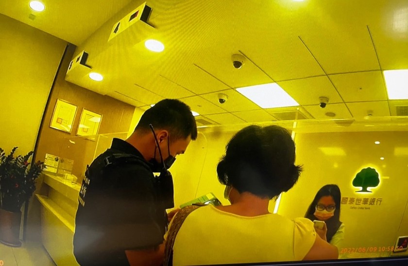四維派出所巡佐林沅益、員警陳威守於(9)日11時許接獲報案稱轄區介壽路國泰世華銀行疑似有遭詐騙案件。經員警到場了解,現場一名王姓婦人表示接到不明電話,表示可提供認購即將興櫃之股票,可有高額的獲利報酬穩賺不賠,其深信不已,與對方加入LINE好友,對方提供帳號,王婦遂於(9)日到銀行要匯款新台幣4萬3千元到其指定帳戶,經員警了解發現王婦完全不認識對方,還要匯出資金,便苦勸此為常見之假投資詐騙話術及手法;且經查證對方所提供之帳號,已被通報為警示帳戶,王婦經警方及行員苦口婆心解釋後,亦覺得依其指示進行匯款恐有遭詐騙之虞,遂打消匯款念頭。