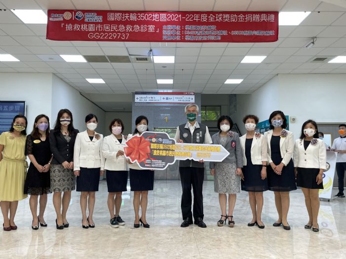 桃園市東南扶輪社社長簡惠子女士代表扶輪社捐贈桃園市政府消防局華勛分隊救護車一輛,扶輪社利用工作之餘從事公益,不僅提供社會各角落急需物資及資金的援助,更為民眾生命財產貢獻一份心力。