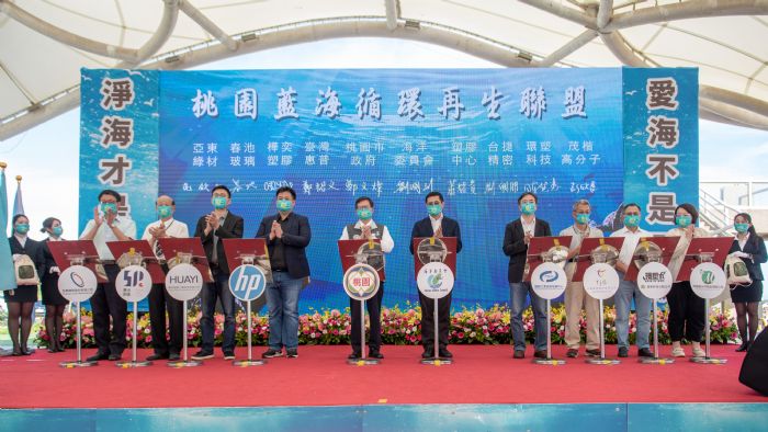 鄭文燦市長與海廢再利用技術廠商共同簽署成立「桃園藍海循環再生聯盟」,建置海廢再利用合作平台,並指出,海洋不是垃圾場,現今海洋垃圾污染已成為全球關注的環境議題,海洋應是生命的搖籃,不僅守護生物多樣性,在平衡全球氣候上,也扮演相當重要的角色,因此,希望在市府的持續努力下,能夠將海廢再利用產業做得好。