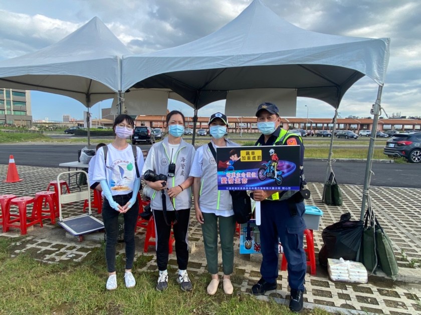 桃園市政府警察局大園分局為提升民眾交通安全意識,25日結合竹圍漁港北岸停車場內「2022小燕鷗賞鳥趣活動」,利用人潮聚集的機會派員上街宣導,藉由傳達民眾正確的知識,了解「路口慢看停、行人停看聽」的重要,降低交通事故發生率。