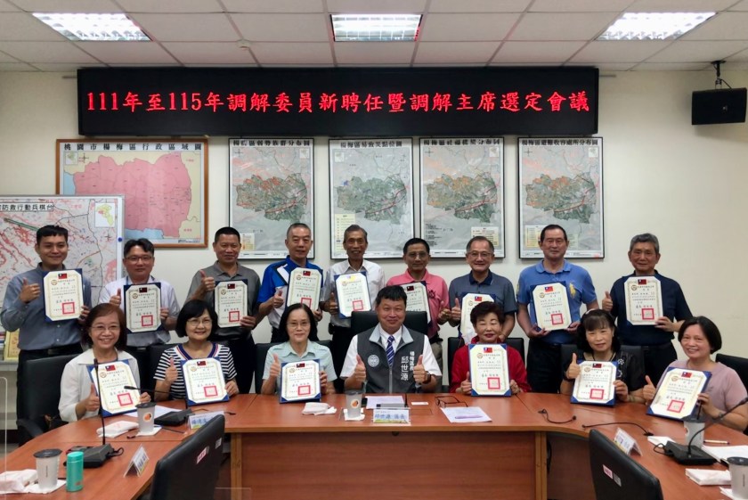 受到地方囑目的楊梅區調解委員會新聘任調解委員,日前經臺灣桃園地方法院及臺灣桃園地方檢察署共同審查通過,完成遴選程序,總計聘任15名調解委員,分別為李光富、郭益輝、黃坤陞、吳貴珠、謝檜墉、黃月燕、鍾源清、袁瑞香、古雲錦、林昭美、劉邱桂美、黃耀通、曾憲基、鄭紹偉、鍾美桂等。新委員任期從111年7月1日至115年6月30日止,為利調解業務順利接軌,楊梅區公所特於7月1日辦理調解委員聘任儀式,由區長邱世源親自頒發聘書。