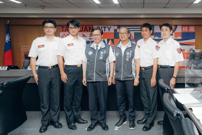 桃園市長鄭文燦13日下午主持市政會議,為消防局4位大隊長授階晉升。鄭市長表示,有感於消防局大隊長直接負責第一線救災任務指揮工作,肩負著現場指揮調度及須與各機關、單位、民眾溝通協調的各項壓力,因此,他建議消防局向內政部爭取,並經考試院同意後,將各直轄市消防局大隊長等階由「警正一階」調高為「警正一階至警監四階」,相當於由公務員9職等調整為9至10職等,藉此彰顯市府對第一線消防大隊長的肯定與重視。