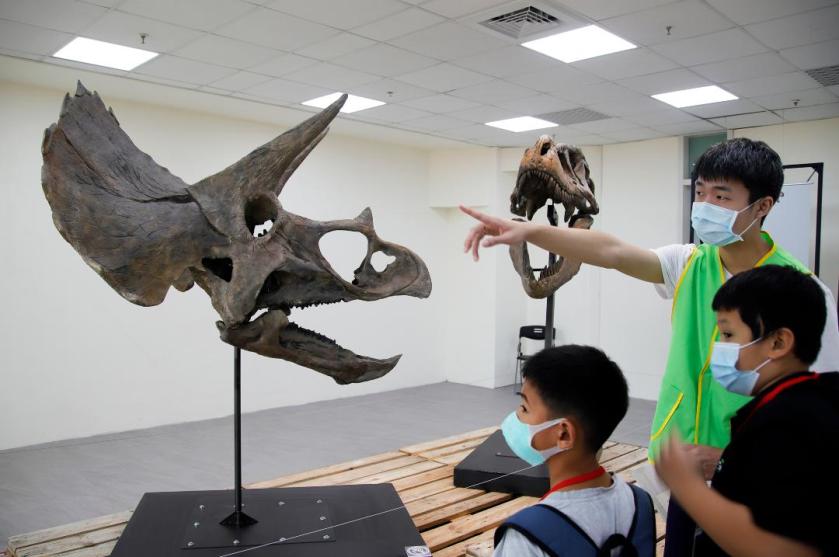桃園天文嘉年華「恐龍與彗星展」在中央大學展出,吸引許多大小朋友前往參觀,還有大學生幫忙解說。