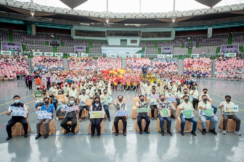桃園市長鄭文燦16日上午前往桃園市立綜合體育館,出席「111年桃園市環保志工群英會」。鄭市長表示,因疫情關係,「桃園市環保志工群英會」取消2年未舉辦,今(111)年視疫情緩解便恢復舉辦。今日活動現場進行「環保啦啦隊」、「環保金頭腦」、「環境保衛戰」及「資源分類王」等4項正式競賽項目,也有10項趣味闖關活動,只要集滿6個活動章,即可兌換小禮物。鄭市長說,除邀請志工夥伴把心打開、齊聚歡樂外,也想藉此感謝桃園590隊、3萬7,000多名環保志工站在第一線守護,讓桃園城市改造後的環境,變得更乾淨、更漂亮、更友善。