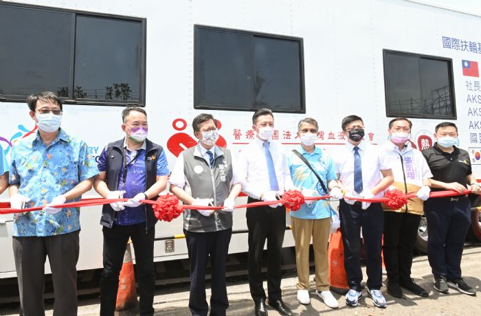 桃園市長鄭文燦16日上午前往中壢區,出席桃園百齡扶輪社「飛躍一號捐血車及捐血亭啟用典禮暨捐血活動」。鄭市長表示,以往捐血車在捐血期間需要發動引擎,帶動冷氣輸出會產生較多噪音,而今日百齡扶輪社所捐贈啟用的「飛躍一號捐血車」及「青埔青昇路捐血亭」,屬新型環保捐血車,插電即可使用,可大幅提升捐血環境友善度。鄭市長也呼籲市民踴躍捐血,讓疫後的台灣,透過公益行動讓需要協助的病患獲得更大幫助。