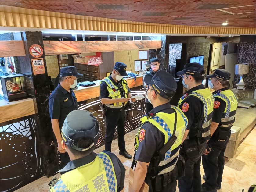 桃園市政府警察局平鎮分局為淨化轄區治安、防治街頭暴力,並壓制特定行業不法行為,在18日深夜出動50多名警力,由分局長吳明彥親自帶隊,針對轄內酒店、卡拉OK及其他治安場所執行擴大臨檢,各業者見警方到場相當配合,並主動表示若有發現可疑不法,將主動轉報、表達支持警方維護治安的決心。