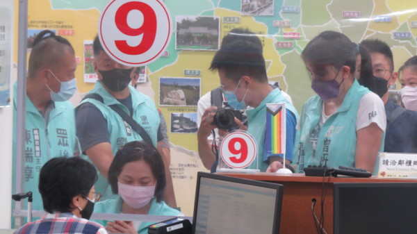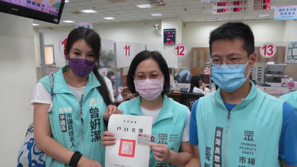 桃園市長參選人賴香伶到楊梅戶政事務所辦理戶籍遷移。